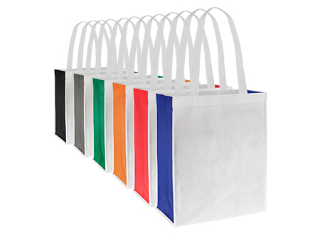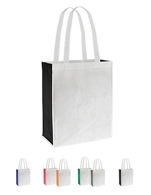 Bolsa Ecológica bicolor modelo "Star", en tela TNT blanca y fuelle de color, 100% reciclable y reutilizable. Cuenta con 2 asas de 41 cm. c/u aprox.