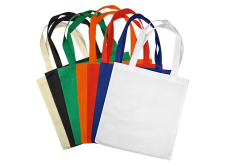 Bolsa Ecológica Plana en Tela TNT, 100% reciclable y reutilizable. Cuenta con 2 asas largas de 58 cm c/u aprox.
